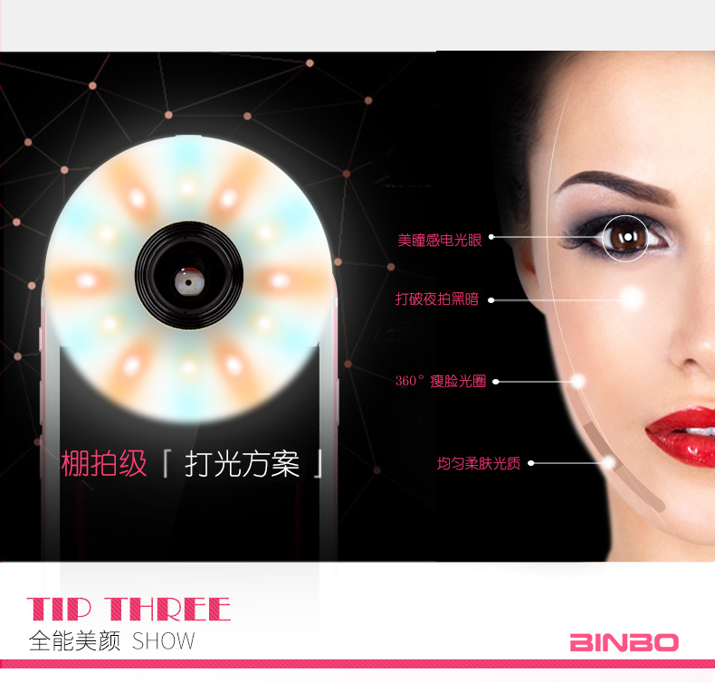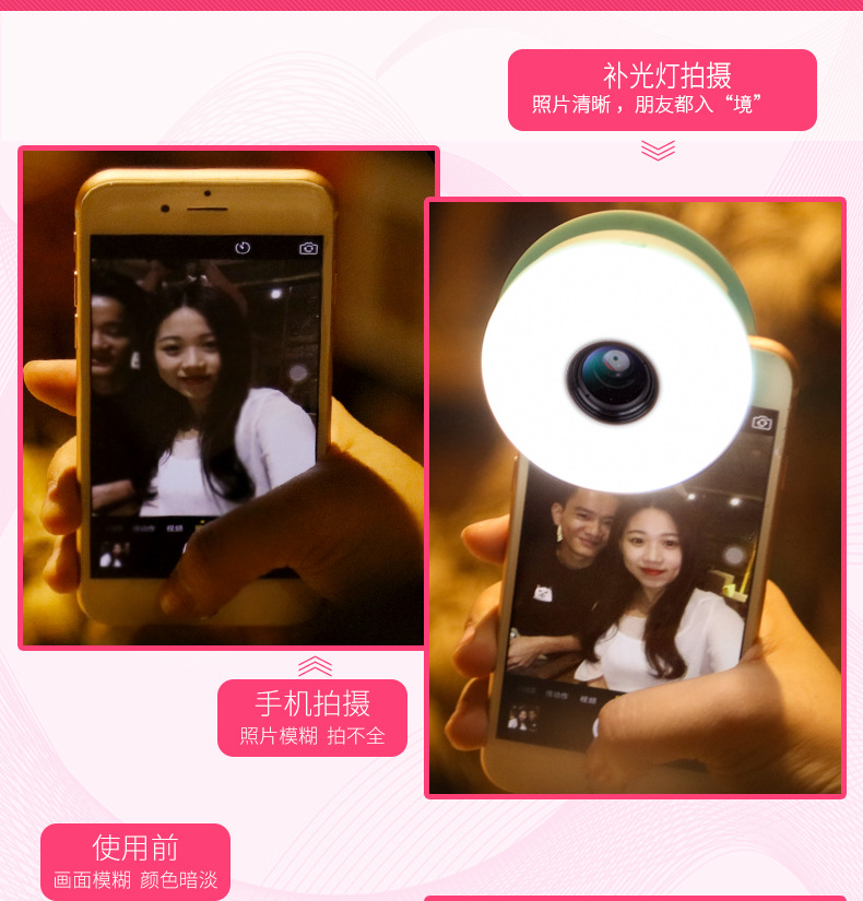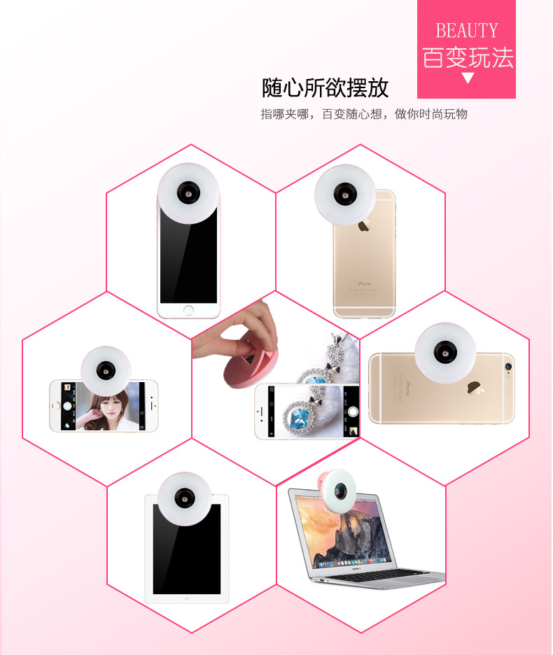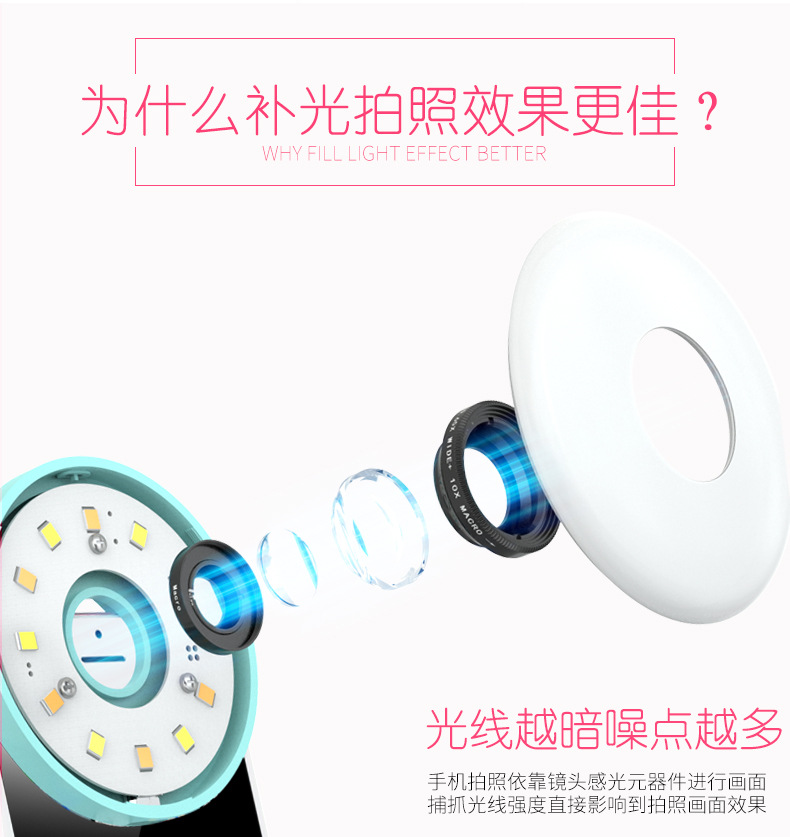 Simple a coax, can be split into two different assembly mode, to meet the different shooting needs, specifically: three gears can be adjusted brightness, fish eyes, wide angle effect, panoramic shooting.