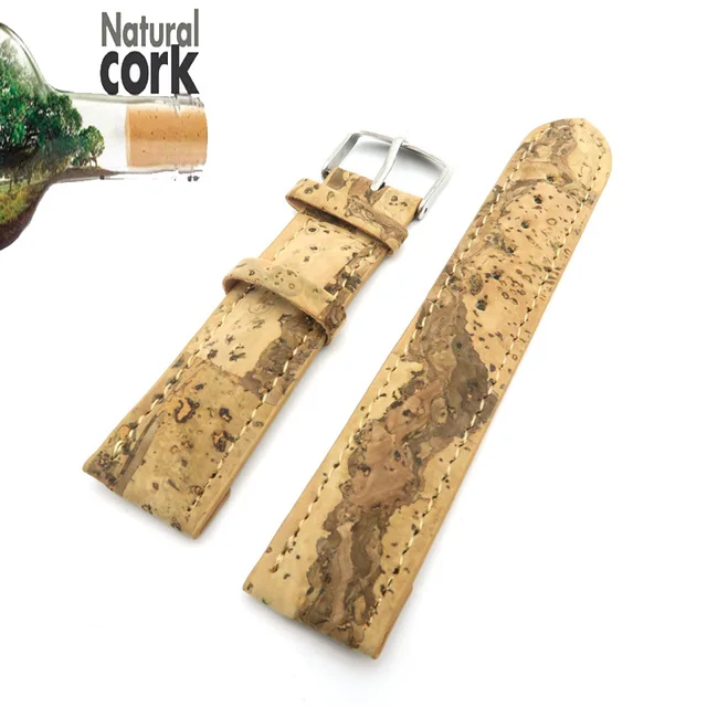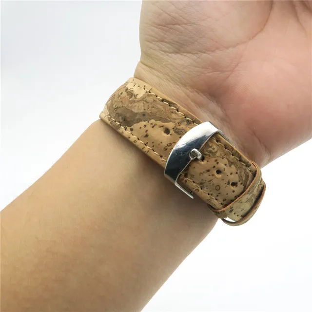 [해외] 천연 코르크 시계 스트랩 나무 곡물 코르크 PU 가죽 수제 채식주의 고품질 E-003