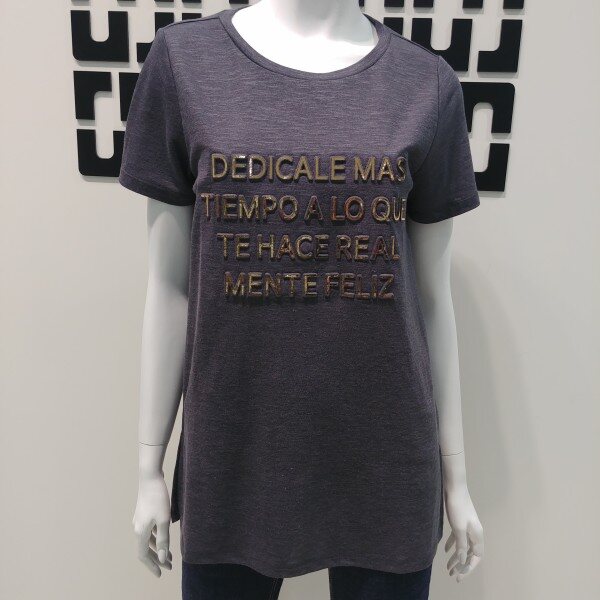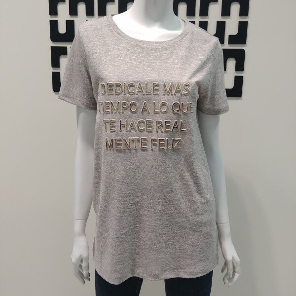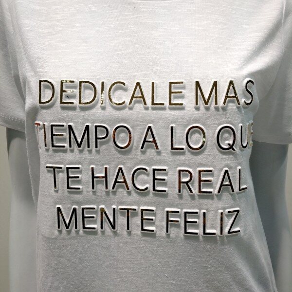 베이직한 디자인에 영문 레터링이 더해져 데일리하게즐겨입기 좋은 반팔 티셔츠 입니다 반짝이는 레터링으로은은한 포인트를 주어 스타일리쉬하게 입기좋고 힙을덮는 기장으로 체형커버에 좋은 케쥬얼한 티셔츠 입니다레터링의 문구는 "당신을 정말 행복하게 만드는 일에 전념하라 " 는 의미입니다 ★27 1/2 인치 기장 입니다★