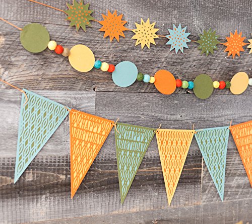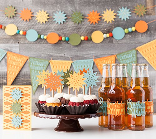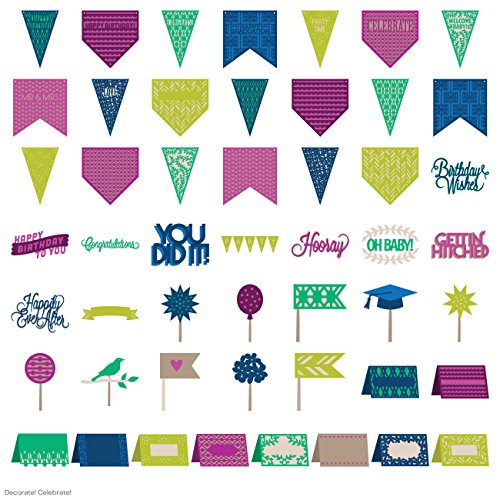 - Contains 10 coordinating sets, each with 2 pennant styles, a sentiment, a cake topper, and a card