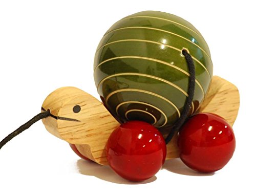 Handmade Wooden Pull Toy with Rotating Ball made using Natural Colors for Toddlers 18 months old and up, helps in early education and development | Tuttu Turtle by Maya Organic (GREEN)