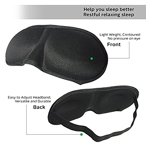 -. Feature : 3-D shape comfortable Sleep Mask; Pack of 2 / High quality soft satin material: Light weight, Contoured (No pressure on eye) / Easy to adjust headband, versatile and durable / Sleep deeply in complete darkness / Ideal for travel, shift work, and meditation