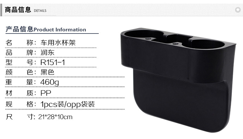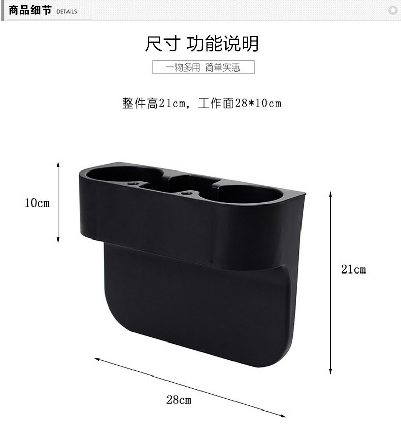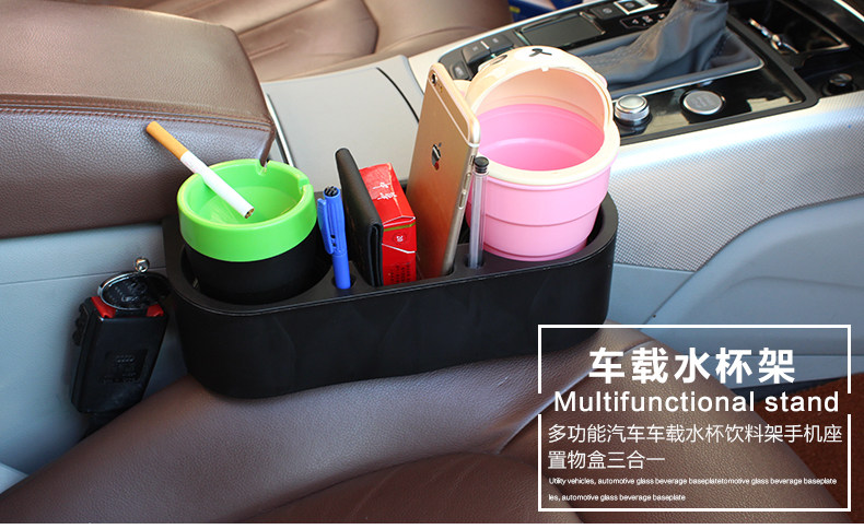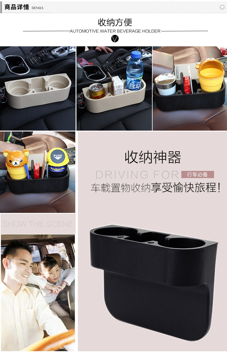 多功能 汽车收纳用品 双杯架设计 通用缝隙盒