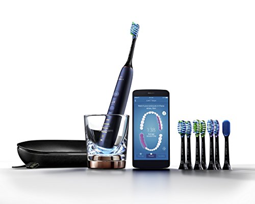 Philips Sonicare DiamondClean Smart Electric, Rechargeable toothbrush for Complete Oral Care, with Charging Travel Case, 5 modes, and 8 Brush Heads – 9700 Series, Lunar Blue, HX9957/51