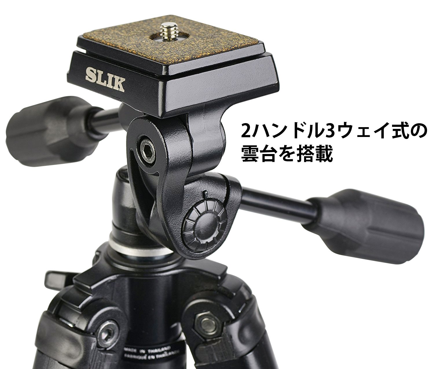 The pan head is a 3-way type with 2 handles.