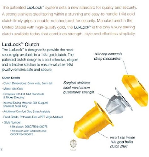 PARIKHS LuxLock World's most secure USA Patented Replacement Earring Back 14k Yellow Gold.