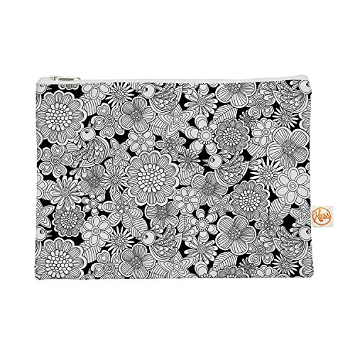 KESS InHouse Julia Grifol "Welcome White Birds" Black Floral Everything Bag, 8.4" x 4" (JG1057AEP03)