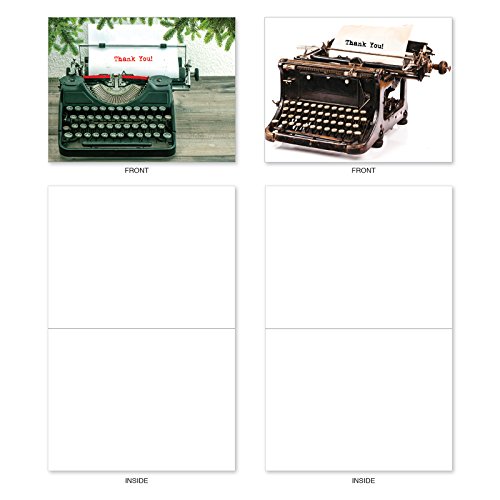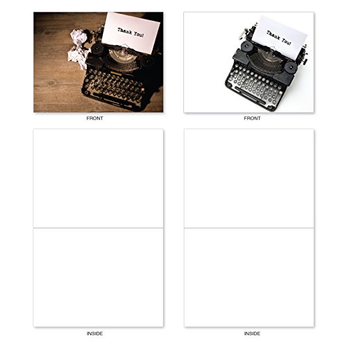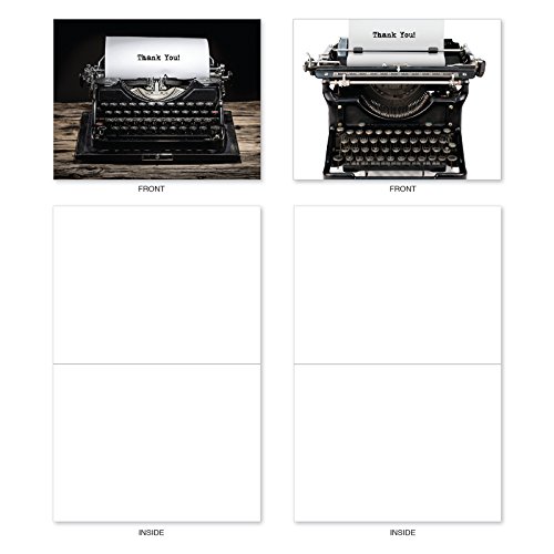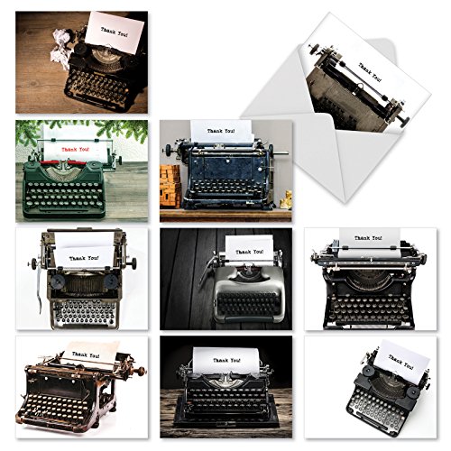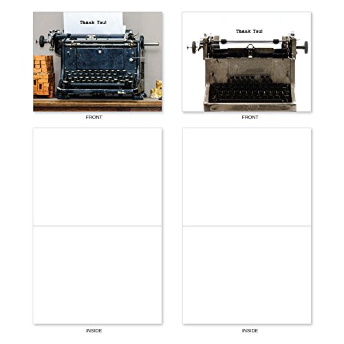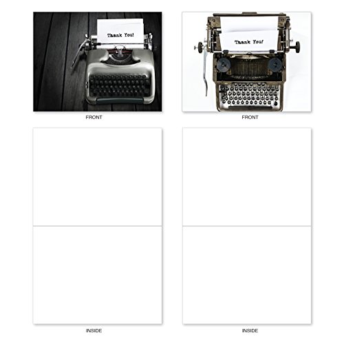 M3968 Manual Thanks: 10 Assorted Blank Thank You Note Cards Feature Images of Old-fashioned Manual Typewriters, w/White Envelopes.