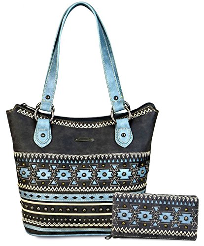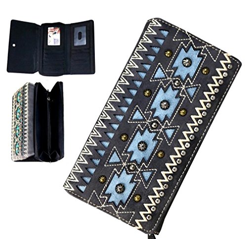 (Montana West)/Accessories/Handbags/DIRECT FROM USA/New! Montana West Aztec Design Zip-Top, 3-Compartment Tote Wallet- Gray