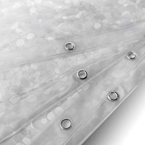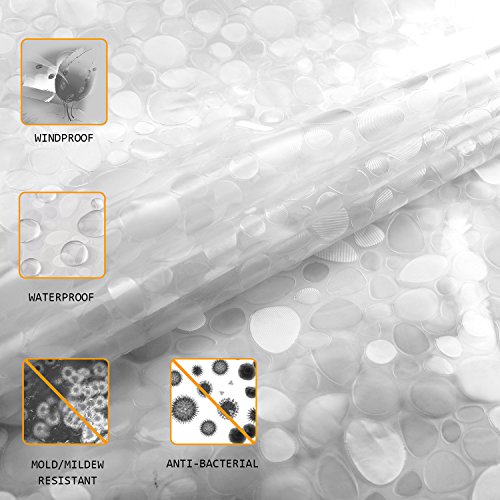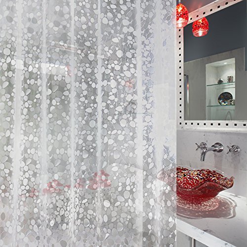 - EXCELLENT DESIGN: The beautiful cobblestone has intaglio touching feeling, let you feel something pleasant. Semitransparent shower liner protect your privacy and won't stick to your body or bathtub while showering.