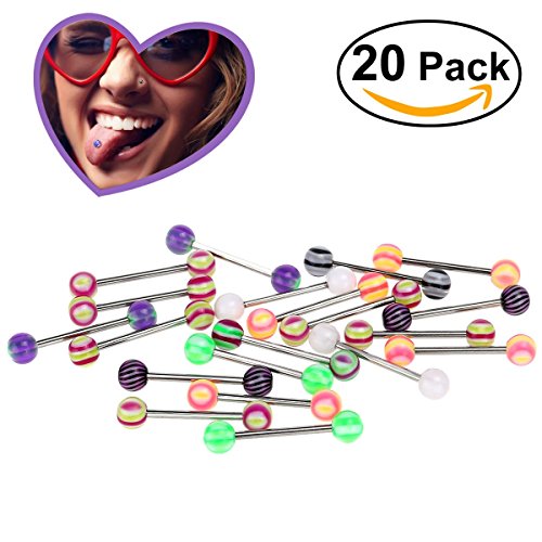 ROSENICE 20pcs Colorful Women Tongue Ring Bar Stud (Random Color)