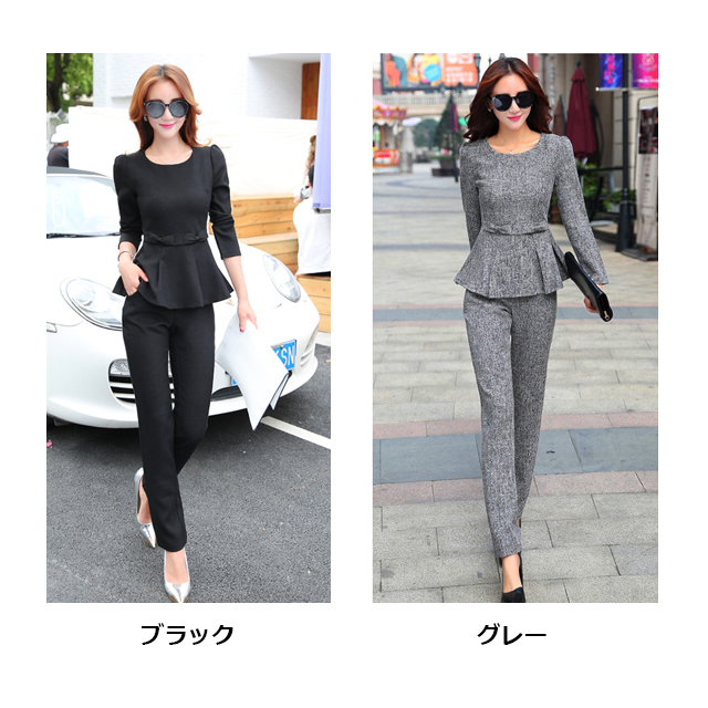 L:(トップス)着丈61cm、バスト88cm、肩幅37cm、袖丈56cm、(パンツ)丈93cm、ウエスト81cm、ヒップ101cm、太もも58cm