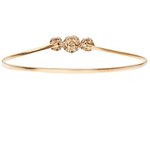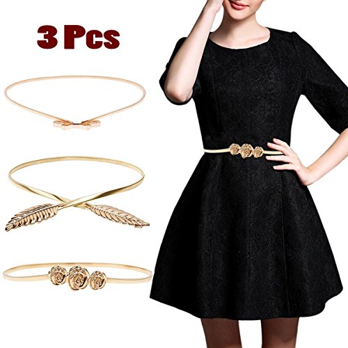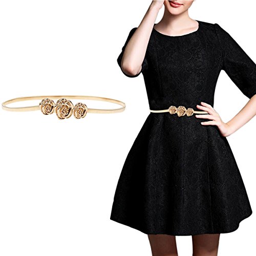 Women Gold Metal Elastic Belt For Dresses Silver Waist Chian Accessory with Buckle (medium, D gold)