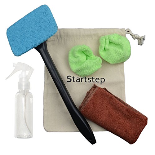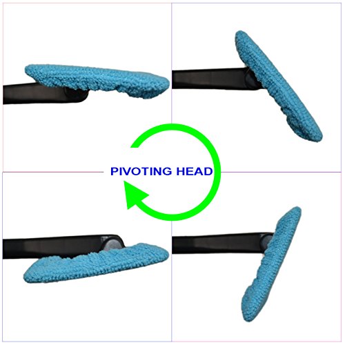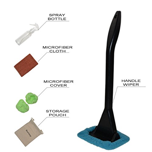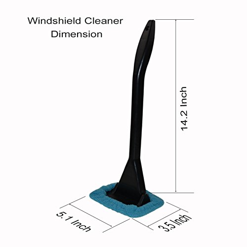 -. Feature : A long extension handle can avoid your hand touch on the windshield directly and keep your hand from stain, pivoting head can fast and easy to reach everywhere on the windshield, car windows, both side interiors and exteriors. / 1 Windshield cleaner 2 Removable washable microfiber bonnet 1 Paper microfiber cloth 1 Canvas storage bag 1 Spray bottle, Bonnet is washable and reusable. Microfiber Cloth can use for uneven or corner in the car, the Storage bag can store the component together make it easy to storage in rear of your car and easy to find it. / Work great, get your car clearer and shine, can use as fog and moisture removal tool too. Also use on the window in your house, television, glass screen, glass mirrors and even floor. / Suitable for use in dry or wet, microfiber head cloth/bonnet enables you to clean your windshield with plain tap water, no need for any chemical cleaners. / Dimensions: 15 x 5.25 x 1.5 inches