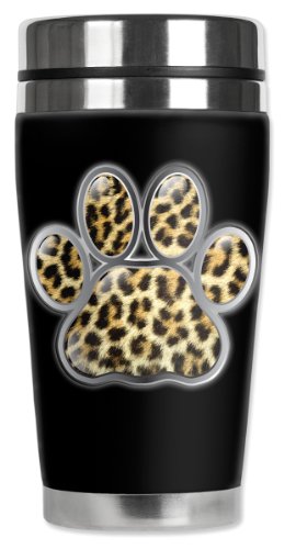 Mugzie Leopard Paw Travel Mug with Insulated Wetsuit Cover, 16 oz, Black