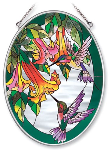 Amia 7232 Hand Painted Glass Suncatcher with Hummingbird Design, 5-1/4-Inch by 7-Inch Oval