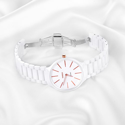 상품명: Time100 세라믹 손목시계 세이코의 석영 무브먼트 초박형 방수 레이디스 맨즈 손목시계 #W50173M.01A (희다)