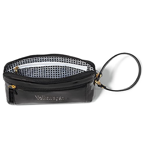 Carry everything you need in design with our Isaac MizrahiTM Ava Wristlet Wallet. The timeless black means it matches with just about everything. Featuring patent leather, a front zippered compartment ideal for storing a smartphone, back pocket sized to fit a checkbook, and a zippered main compartment. Black. Word Volkswagen debossed on front.
