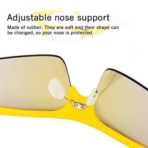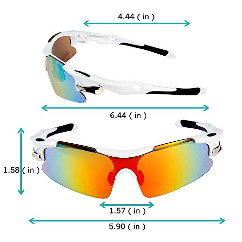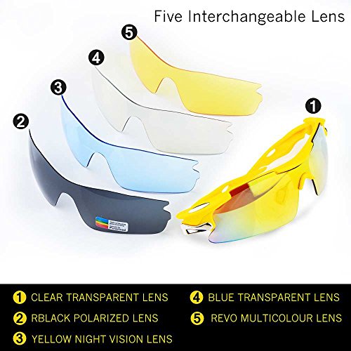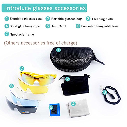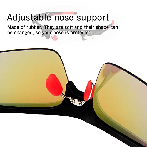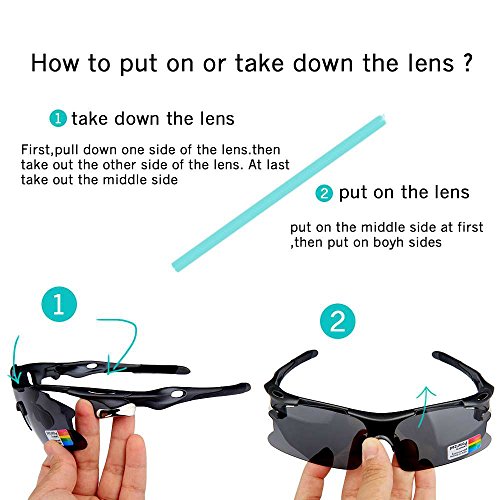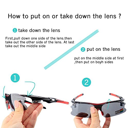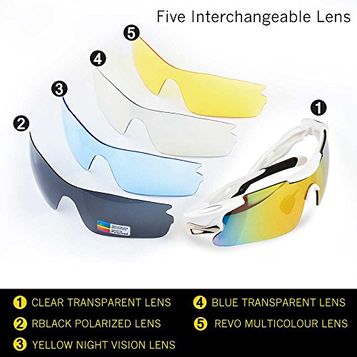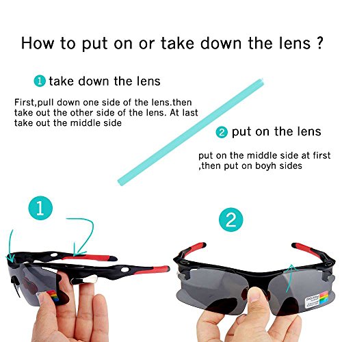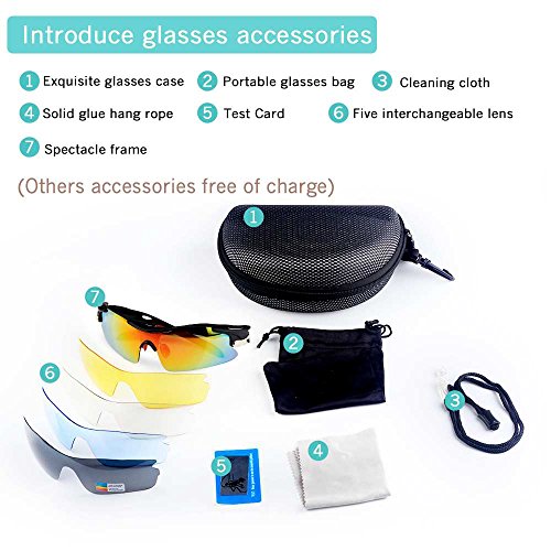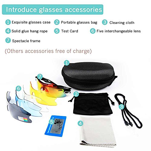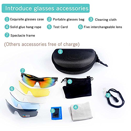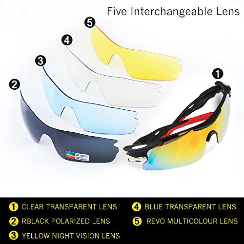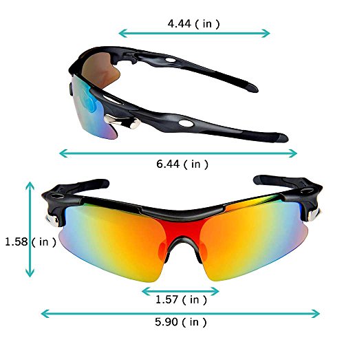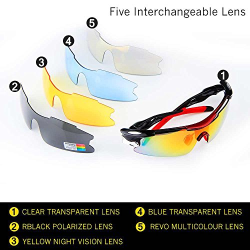 - Feature : Polarized lenses eliminate glare and reduce eye fatigue, 100% UV400 Protection Coating / Shatterproof Flexible Polycarbonate Frame, The adjustable nose support made of soft silicone, it can be changed so that can fit you nose well and make you feel more comfortable / 5 Shatterproof Lens:The Main Black lens is Polarized Lenses Against Strong Sunlight, the Other 4Lens are Colored Sunglasses for Different Environmental Condition / Lightweight design is ideal for usage by motorcycle and cycling bicycle, driving, running, fishing, racing, Skiing and climbing, Trekking or other outdoor activities enthusiasts. Allows for easy and convenient to carry and install / 30 Day Money Back Guarantee, Lifetime Breakage Warranty on Frame & Lens
