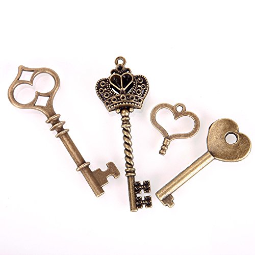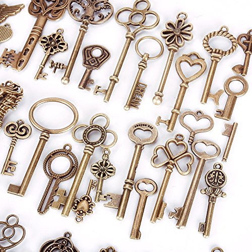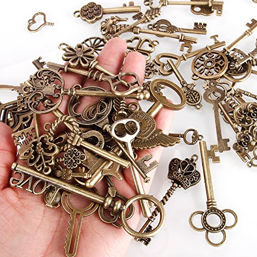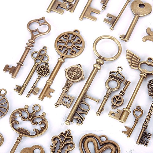 KeyZone Wholesale 69 Pieces Large Antique Bronze Vintage Skeleton Mixed Key Charms Necklace Pendant for DIY Jewelry Making
