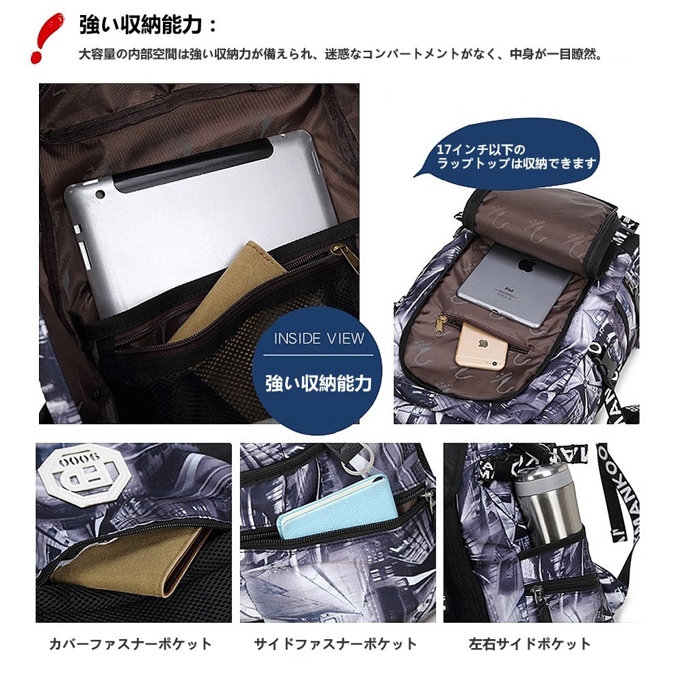 The contents of the bag is easy to use storage arrangement, it is easy to store items such as clothes for 2 days for weekend and 17-inch PC and can enjoy comfortable travel with one bag!