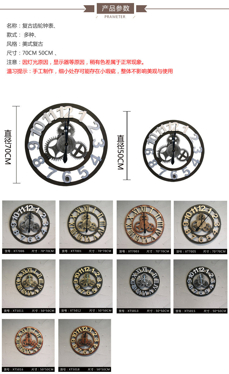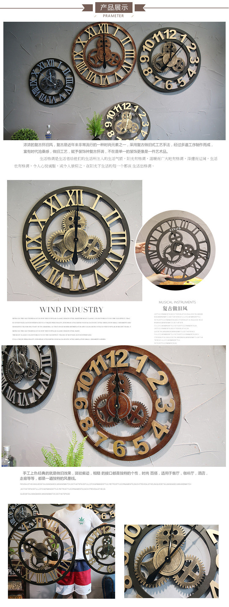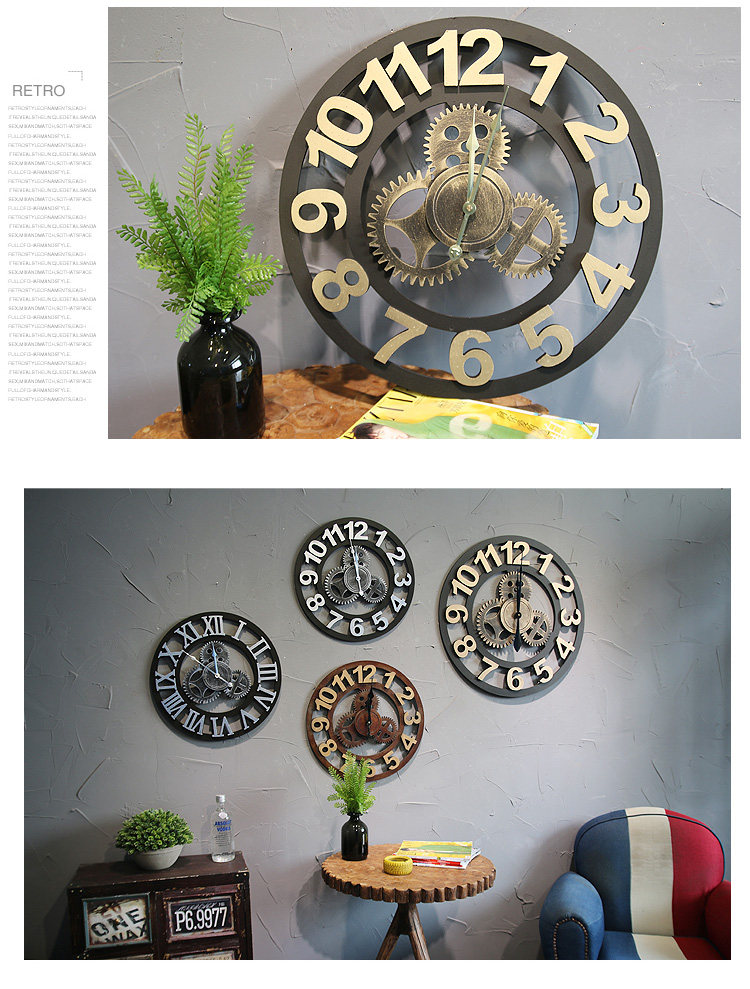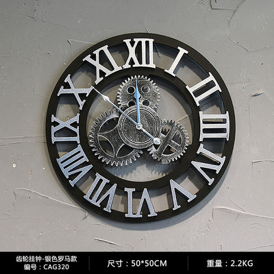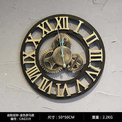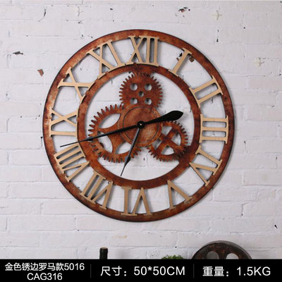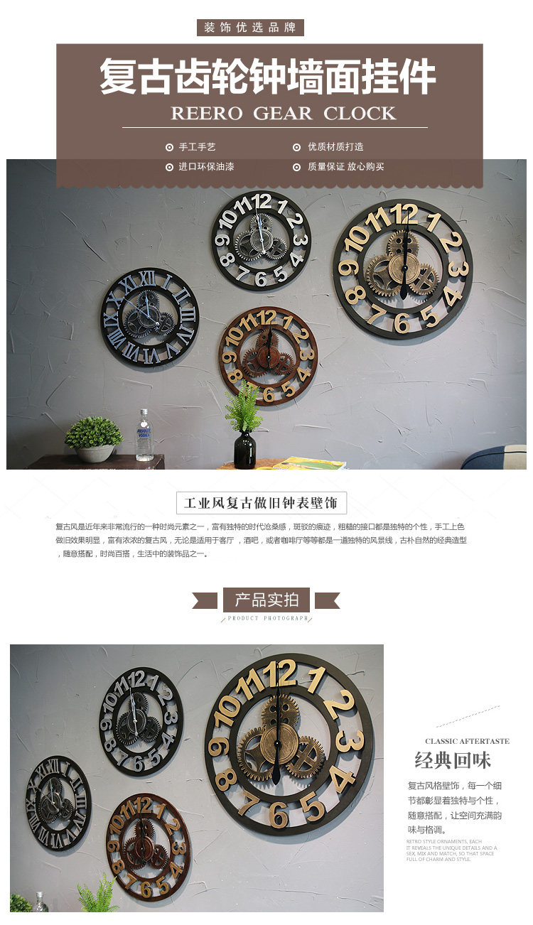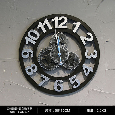 创意工业风齿轮时钟 酒吧客厅卧室圆形钟表家居挂表 个性时尚挂钟