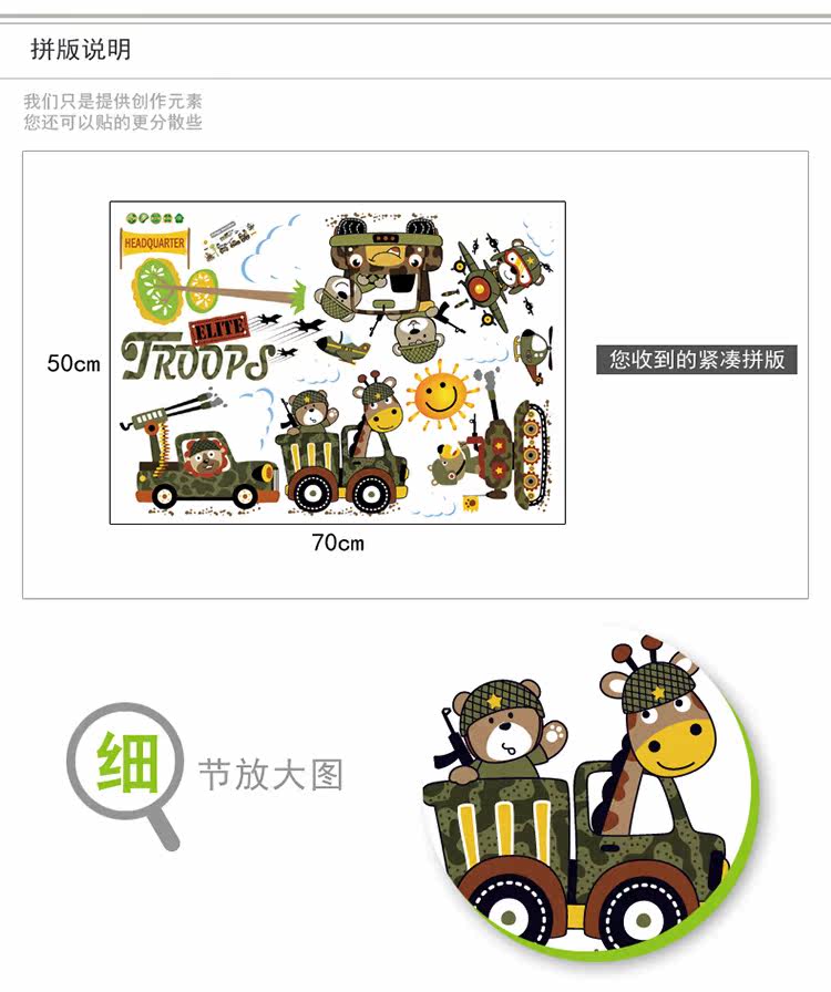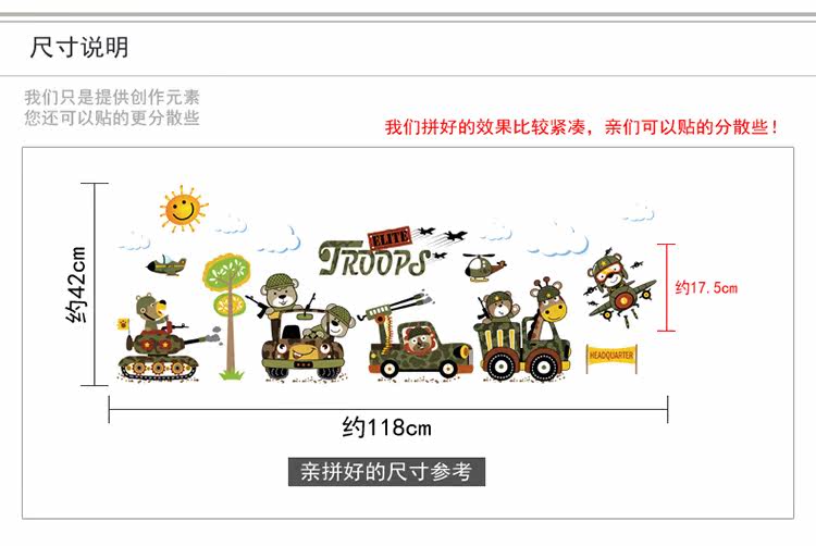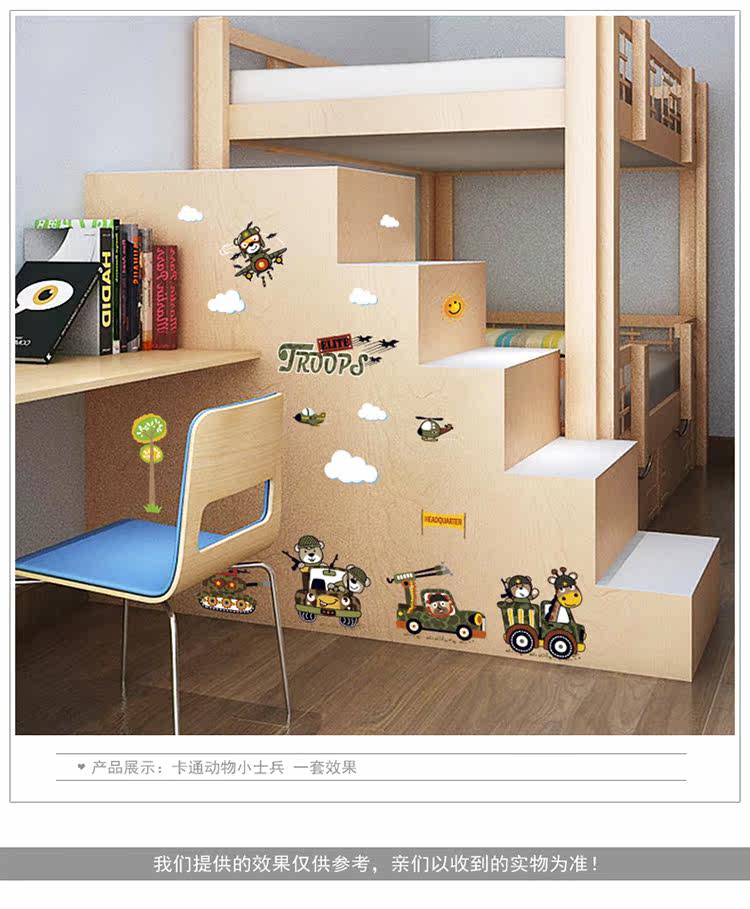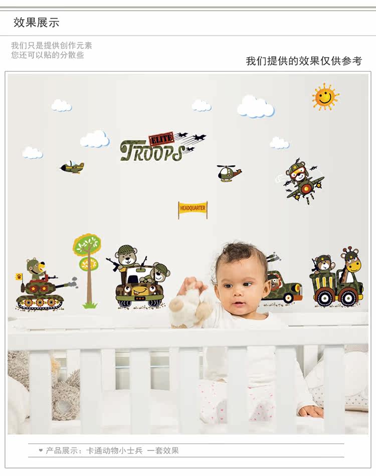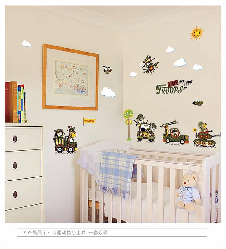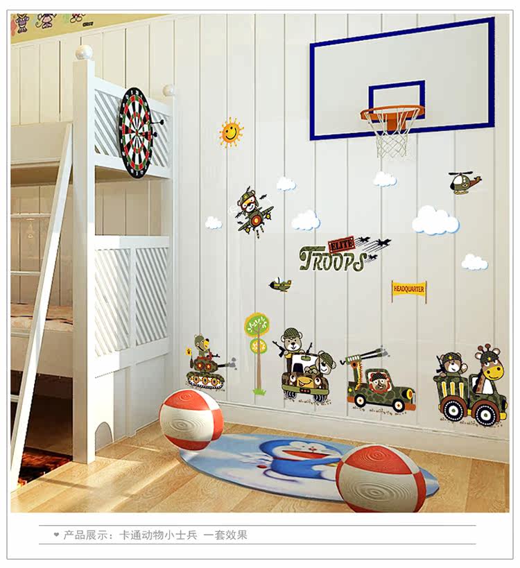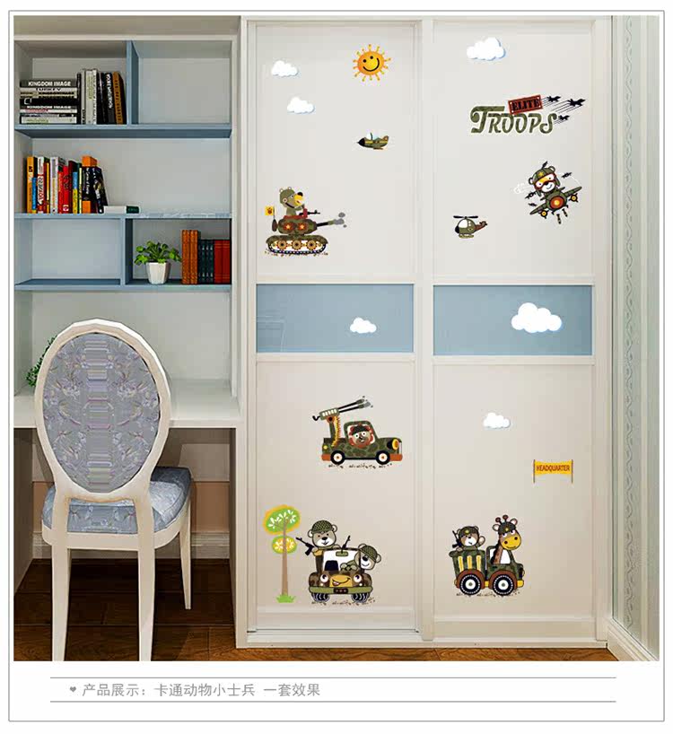 儿童房间床头衣橱男孩可爱卡通动漫动物士兵装饰可移除墙贴纸贴画
