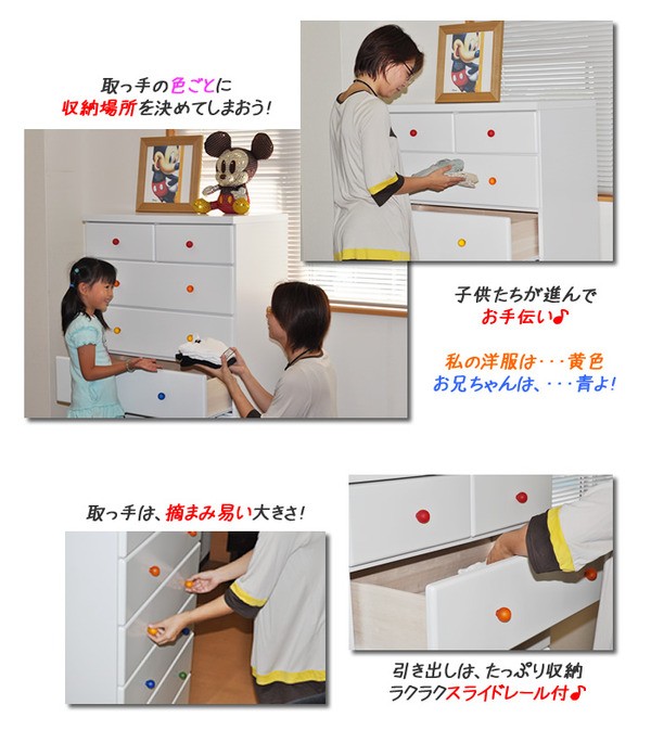 子供用、子ども用、こども用、子供部屋、子ども部屋、こども部屋、収納ダンス、ベビーダンス、箪笥、洋服タンス、洋服ダンス、子供服、収納チェスト、整理たんす、白、引出し、引き出し、男の子、女の子、幼稚園生、小学生、衣類収納、押し入れ収納、押入れ収納、可愛い、かわいい、出産祝い