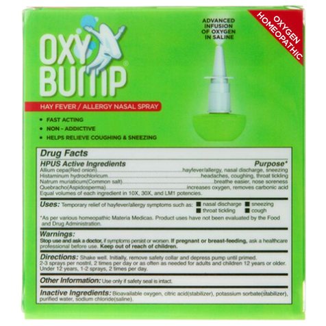 Studio : Oxy Bump Corporation Publisher : Oxy Bump Corporation Binding : Health and Beauty Product Description An advanced oxygen and homeopathic formulation created by our Oxy Bump experts in collaboration with a leading Naturopathic Doctor. Our pure water-based homeopathic ingredients are from the finest sourced natural components such as mineral and plant extracts. Infused with the power of oxygen, Oxy Bump homeopathics have exclusive proprietary formulations, that are highly effective yet non-addictive with no contraindications. As with all our Oxy Bump products, it is pH-balanced and non-addictive. No unpleasant after-taste or post-nasal drip involved, just clean, tasteless, and odor-free goodness that will make you breathe and think clearly. A safe alternative to steroidal nasal sprays. Our award-winning nasal spray design is the fastest, non-invasive biological delivery method. Compared to swallowing a pill/liquid and having some of the ingredients lost to the digestive process, intra-nasal quickly delivers ALL of our oxygen-homeopathic directly to where it is most needed so that you feel Oxy Bump fast! Official manufacturer for Ox Bump** For more information about our products, please visit: http://oxybump.com 0