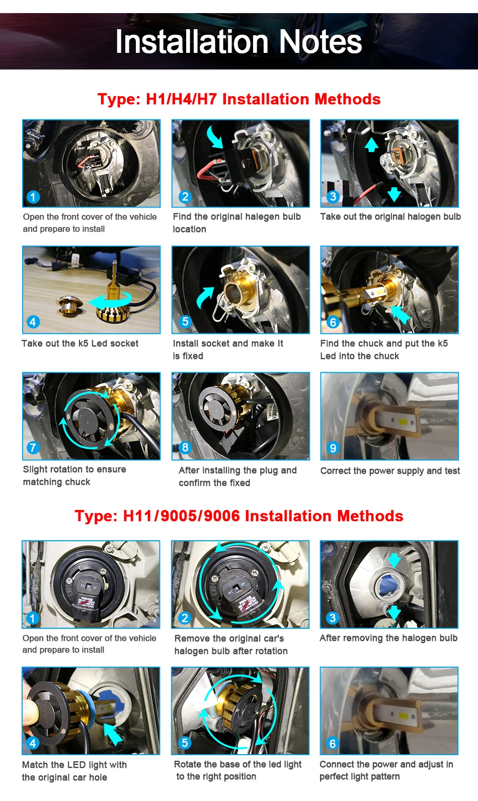 LED H7 headlight voltage:DC9-32V, Fit 12V/24V vehicle
