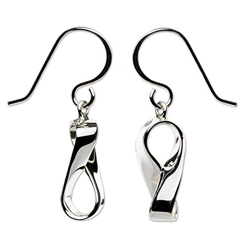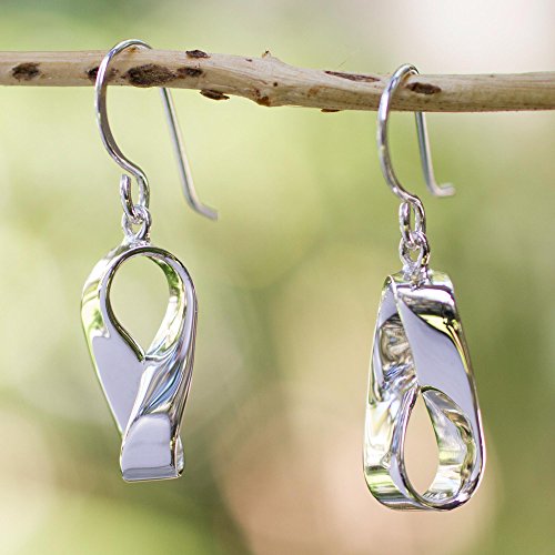 About this item: A gleaming .925 sterling silver ribbon bends in an elegant curve to create the semblance of a Mobius strip. Handcrafted by Oscar Figueroa, these elegant and contemporary dangle earrings showcase the legendary art of Taxco silver jewelry.