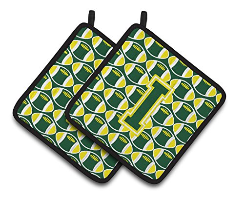 Caroline's Treasures Letter I Football green & Yellow Pair of Pot Holders CJ1075-IPTHD, 7.5HX7.5W, Multicolor