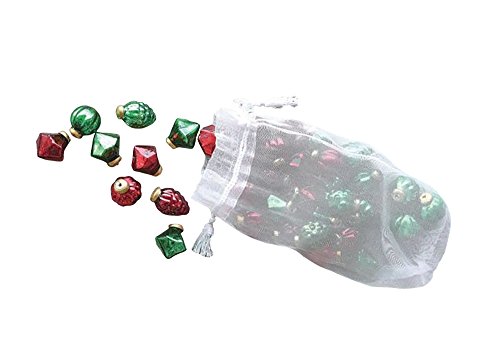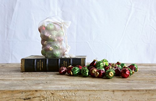 Creative Co-op XC3415A 1"H Mercury Glass Ornaments In Organza Bag, 3 Styles, Red & Green, Set of 36