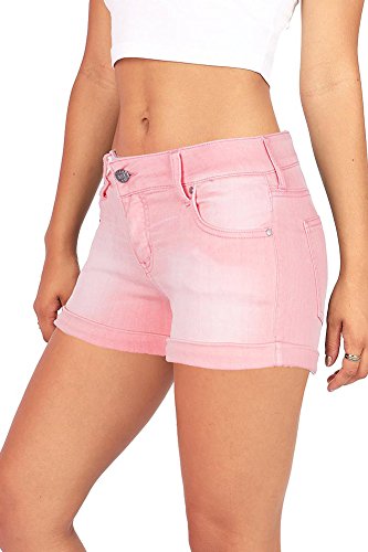 Low rise casual shorts with a soft hazy wash and a cuffed design on the bottom. Traditional 5 pockets and zip fly front. Easy to pair with any style top and stretchy fabric for a comfy fit! Available in more colors.Feature