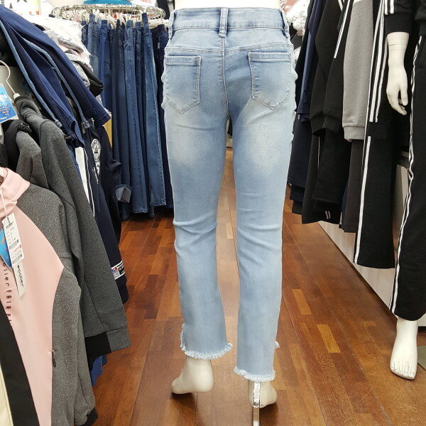 부츠컷 9부 아이스 데님 바지 입니다.신축성이 좋고, 입으면 핏이 예쁜 스타일 입니다.