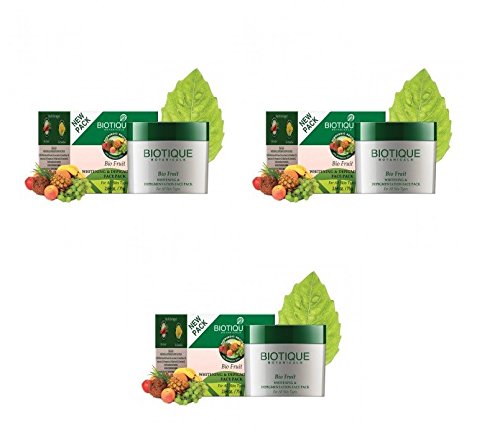 -. Binding : Misc. -. Brand : Biotique -. EAN : 3132366365589 -. Feature : Get the most beautiful and desirable skin with this Bio Fruit Flawless Whitening Face Pack from Biotique. / The blend of papaya, lemon and tomato in this pack diminishes the pigmentation on your skin, thereby giving you an even skin tone and exceptional radiance. -. IsAdultProduct : 0 -. Label : BIOTIQUE -. Manufacturer : BIOTIQUE -. MPN : BIOTIQUE-263 -. PackageQuantity : 3 -. PartNumber : BIOTIQUE-263 -. ProductGroup : Beauty -. ProductTypeName : BEAUTY -. Publisher : BIOTIQUE -. Studio : BIOTIQUE -. Title : Biotique Bio Fruit Whitening and Depigmentation Face Pack For All Skin Types (75g) (Pack of 3)