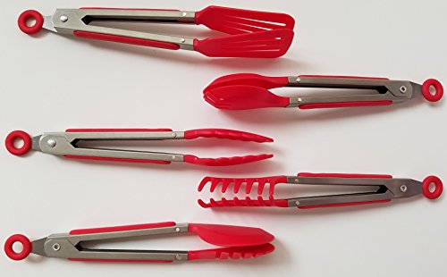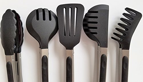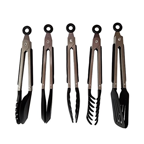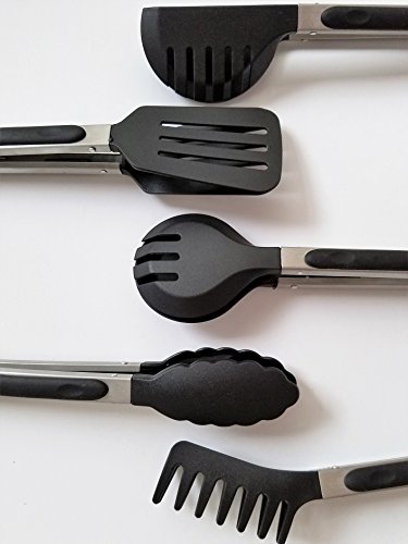 -. Feature : Exclusive set of durable and long lasting tools made of heat resistant nylon body and high quality stainless steel handle. Each tool has non-slip silicone grips for comfortable handling. / Great size- mini 7 inch size is perfect for kids as well as for buffets, guests and large dinner parties. Unlike others, these actually stay on the serving platter or bowl. / Multipurpose- prep, toss, serve! Each tool has different uses for everyone from chefs to kids / Tongs have a sliding lock which closes easily to fit in the kitchen drawer. Dishwasher safe for easy cleaning. / Sold at craft stores for $5.99 each! Bundled here for all your needs. After you use these, you'll wonder how you lived without them for so long!