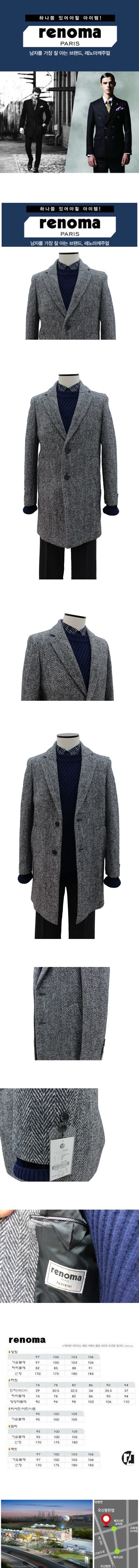 ★상품설명★(정상가 : 450,000원)모56%, 레이온20%, 폴리에스터19%, 나일론5%그레이 테일러드 싱글 체스터 모직 코트.단조롭지 않은 칼라감을 자랑하며, 모직혼방으로따뜻하며 가벼움을 자랑하는 제품입니다.정장 amp; 캐쥬얼 어디에든 코디가가능한 제품으로 추천드리는 상품입니다.검색창에 ""RENOMA 품절임박""을 검색해보세요.