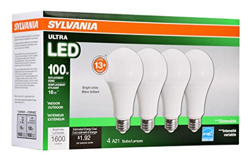 Sylvania Home Lighting 73190 A21 Sylvania, 100W Equivalent, LED Light Bulb Lamp, Efficient 16W 3500K (4-Pack), Bright White, 4 Piece