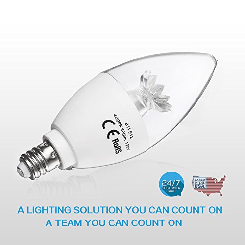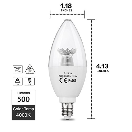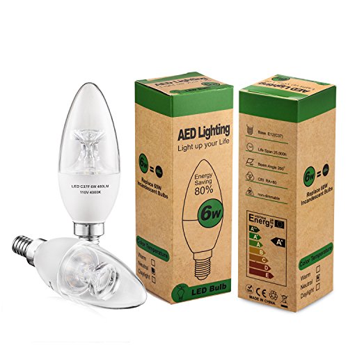 AED Lighting LED Candelabra Bulb, 60-Watt Light Bulbs Equivalent, LED 6 Watt Cool White 4000K Chandelier Bulbs, Decorative Candle Light Bulb E12 Candelabra Base, 480lm, Non-dimmable Led bulbs, 6 Pack