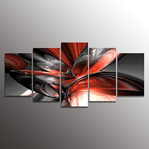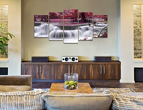 Formarkor Art Canvas Print for Living Room Decoration, Kx00202 Framed, Stretched , 5 Panels Red Dreamlike Waterfall Painting Wall Art Picture Print on Canvas- High Definition Modern Home Decor