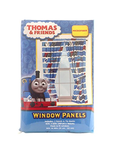 -. Binding : Toy -. Brand : Mattel -. Color : Drapes -. EAN : 0032281289164 -. Feature : Includes (2) curtain panels and (2) tie backs for a full window ensemble / Each curtain panel measures 42" wide (total width 84") by 63" long / Fits standard decorative curtain rod (sold separately) / Perfect for any child's bedroom or kid's playroom / Easy care, machine washable polyester -. Label : Jay Franco and Sons -. Manufacturer : Jay Franco and Sons -. ProductGroup : Toy -. ProductTypeName : TOYS_AND_GAMES -. Publisher : Jay Franco and Sons -. Studio : Jay Franco and Sons -. Title : Thomas The Tank Engine "T-Block" Curtain Panel and Tie Backs Drapery Set -. UPC : 032281289164