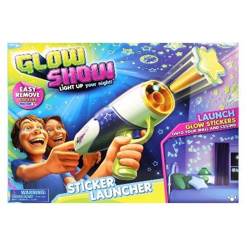 -. Binding : Toy -. Brand : GLOW SHOW -. EAN : 0756250300673 -. Feature : LIGHT UP YOUR NIGHT WITH A GLOW SHOW!!! / LIGHT CHARGER: It's time to shine! Charge up your sticker with light and aim your launcher! / PROJECTOR: Use your projector to bring you Glow Show to life! / TRIGGER: Ready! Set! Glow! Shoot the Stickers onto your walls and celiings! -. IsAdultProduct : 0 -. Label : MOOSE -. Manufacturer : MOOSE -. MPN : 13102 -. PartNumber : 13102 -. ProductGroup : Toy -. ProductTypeName : TOYS_AND_GAMES -. Publisher : MOOSE -. Studio : MOOSE -. Title : GLOW SHOW STICKER LAUNCHER, TOY PROJECTOR, FOAM BLASTER NERF GUN, DART GUN,GLOW IN THE DARK -. UPC : 756250300673
