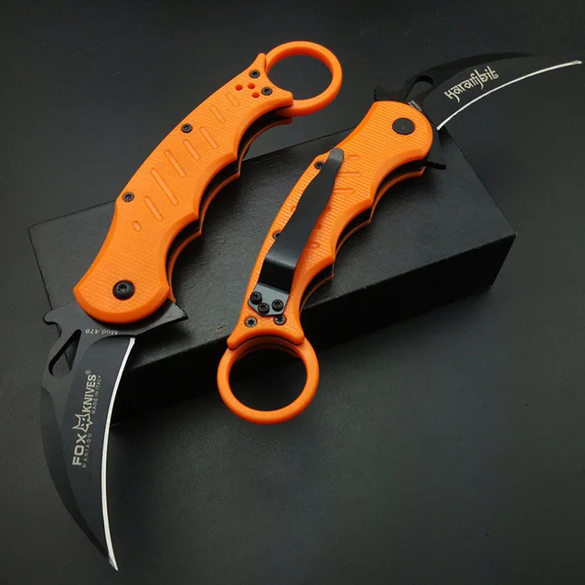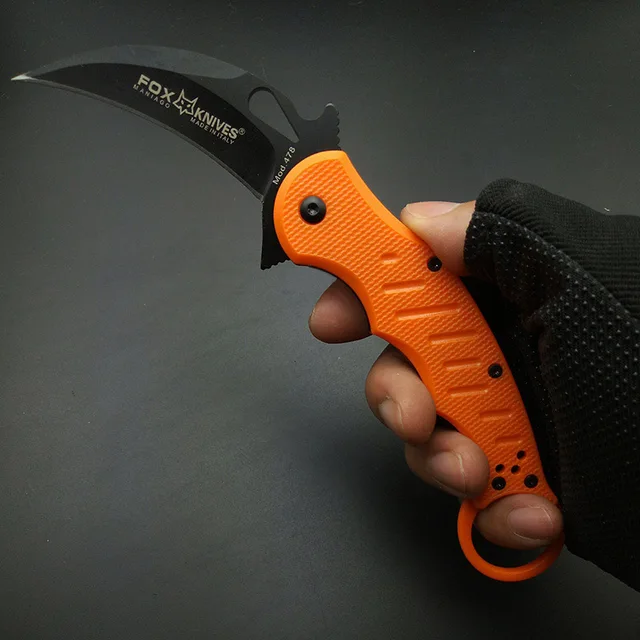 | [해외] 오렌지 스타일 여우 Karambits 440C 발톱 스테인레스 스틸 블레이드 플라스틱 핸들 포켓 나이프 생존 도구 야외 선물 캠핑 도구 |