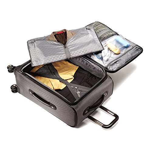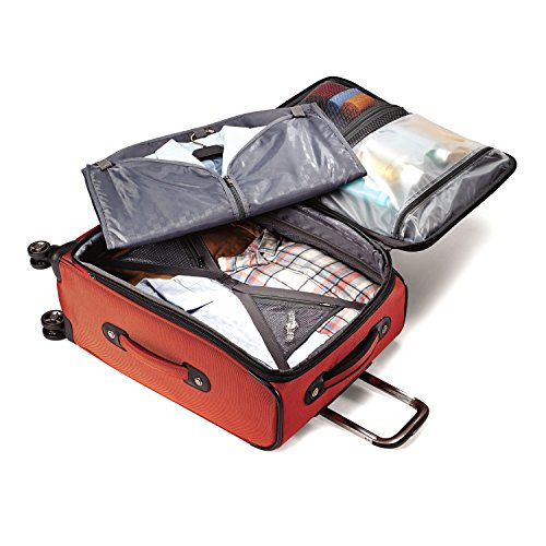 -. Feature : Four multi-directional dual spinner wheels for easy mobility. Rolls upright so there is no weight on your arm or shoulder. / Large, self-mending #10 coil zippers for flawless closure / Multiple exterior and interior pockets keep you organized