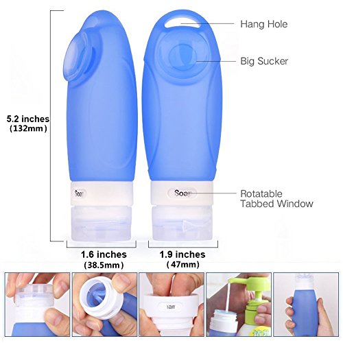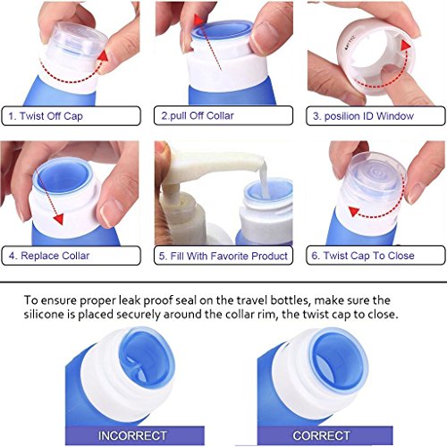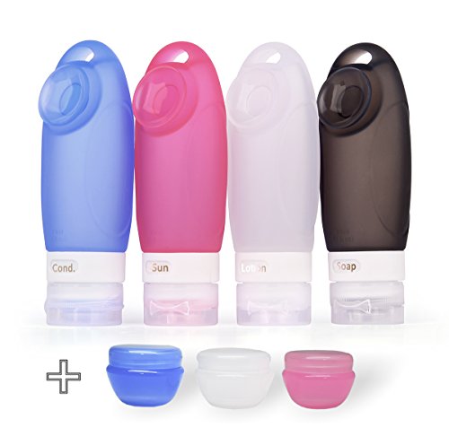 FullPlus TSA Approved Portable Silicone Travel Bottles Set with Cream Jars in Clear EVA Bag (3 oz,Pack of 7)