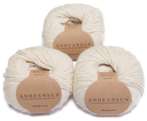 100% Baby Alpaca Yarn Skeins - Set of 3 Ivory - AndeanSun - Luxuriously soft for knitting, crocheting - Great for baby garments, scarves, hats, and craft projects Ð IVORY