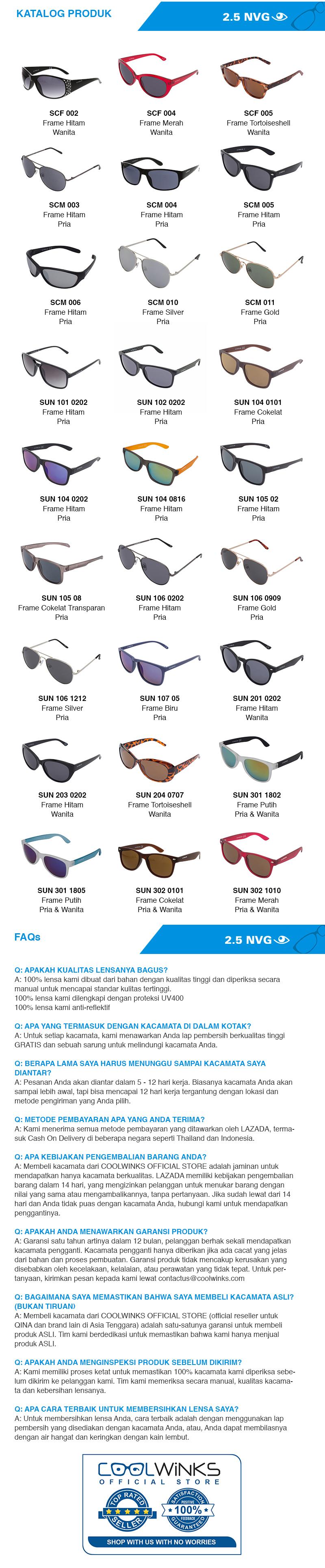 Kacamata 2.5 NVG ini cocok untuk pria. Kacamata hitam persegi panjang ini memiliki lensa abu abu. Dengan 100% perlindungan UVA/UVB untuk melindungi mata dari sinar berbahaya matahari. Kacamata dikirim dengan kotak resleting yang ringan, GRATIS untuk melindungi kacamata Anda.