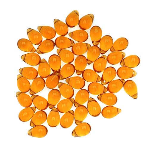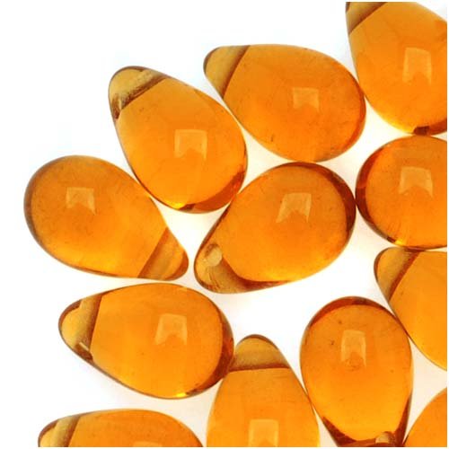 Czech Glass Beads 9mm Teardrops Amber Topaz (50)