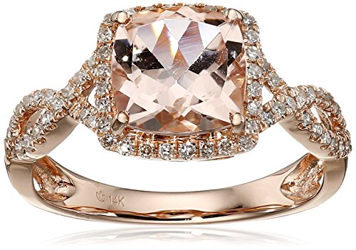 -. Feature : This shimmering 1.8 carat Morganite and 0.27 cttw diamond ring sets the tone for elegance. The cushion-cut Morganite focal point is so stately, and the looped, openwork band lathered in diamonds adds a fabulously feminine dimension to this stunning creation. / Best gift for valentine's day, birthday, engagement, wedding, anniversary and other occasions / All our diamond suppliers confirm that they comply with the Kimberley Process to ensure that their diamonds are conflict free / Imported